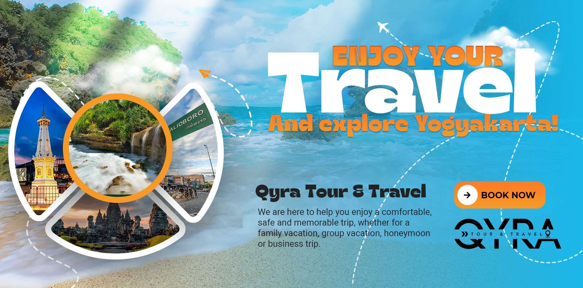 Selamat datang di Qyra Tour & Travel, penyedia layanan wisata terpercaya yang siap menemani perjalananmu menjelajahi keindahan Yogyakarta dan destinasi menarik lainnya di Indonesia maupun mancanegara. Kami hadir untuk memberikan pengalaman wisata terbaik dengan pelayanan profesional, harga terjangkau, serta itinerary yang fleksibel sesuai dengan kebutuhan pelanggan.